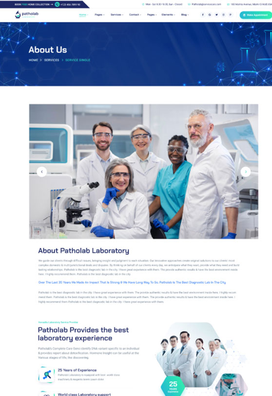 With Patholab you can easily create your own complete website. The inner pages have been optimally designed and arranged to serve your needs.